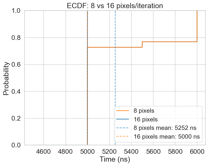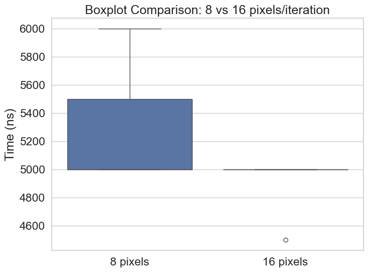 However, processing 16 pixels per iteration reduces the required load instructions by half, and the same