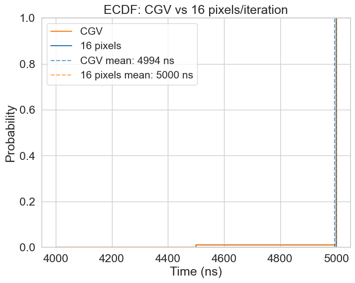 The second approach (16P) will process 16 pixels per iteration, but requires twice the add, shift and or instructions.